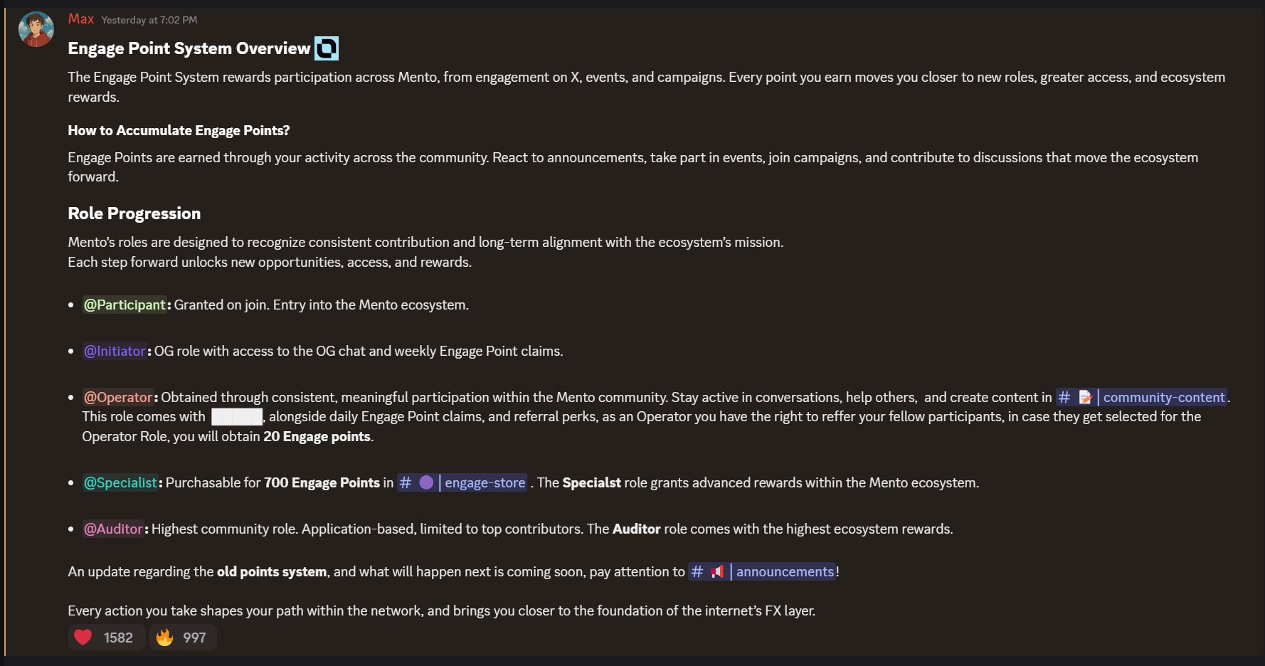 Mento is also distributing roles in Discord based on Engage Points. You can become part of the community to get unique roles!