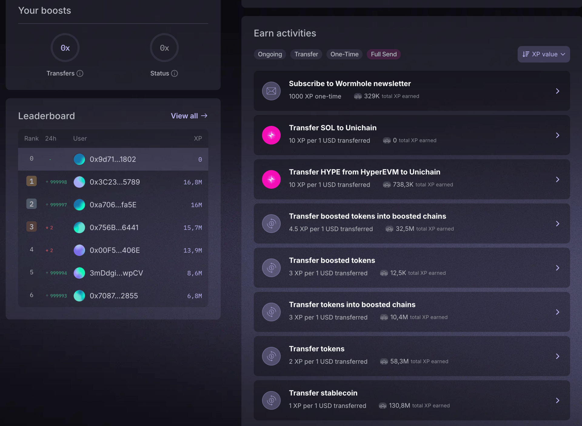 Wormhole has launched Portal Earn! You can earn XP for completing tasks, bridging tokens and staking. In the future, earned XP will be converted into project tokens. If you applied to the Waitlist before, you should have received an email with a link to claim 10K XP.
