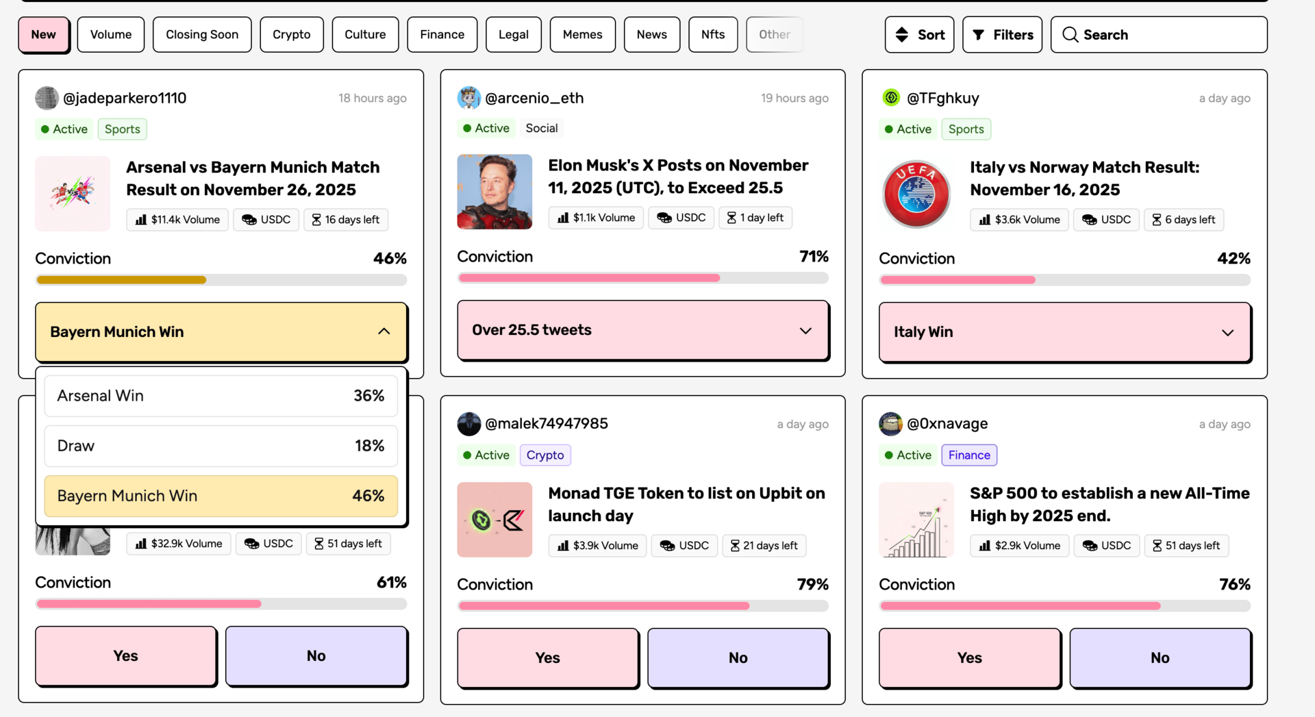 Open the Markets tab and start betting on various events;