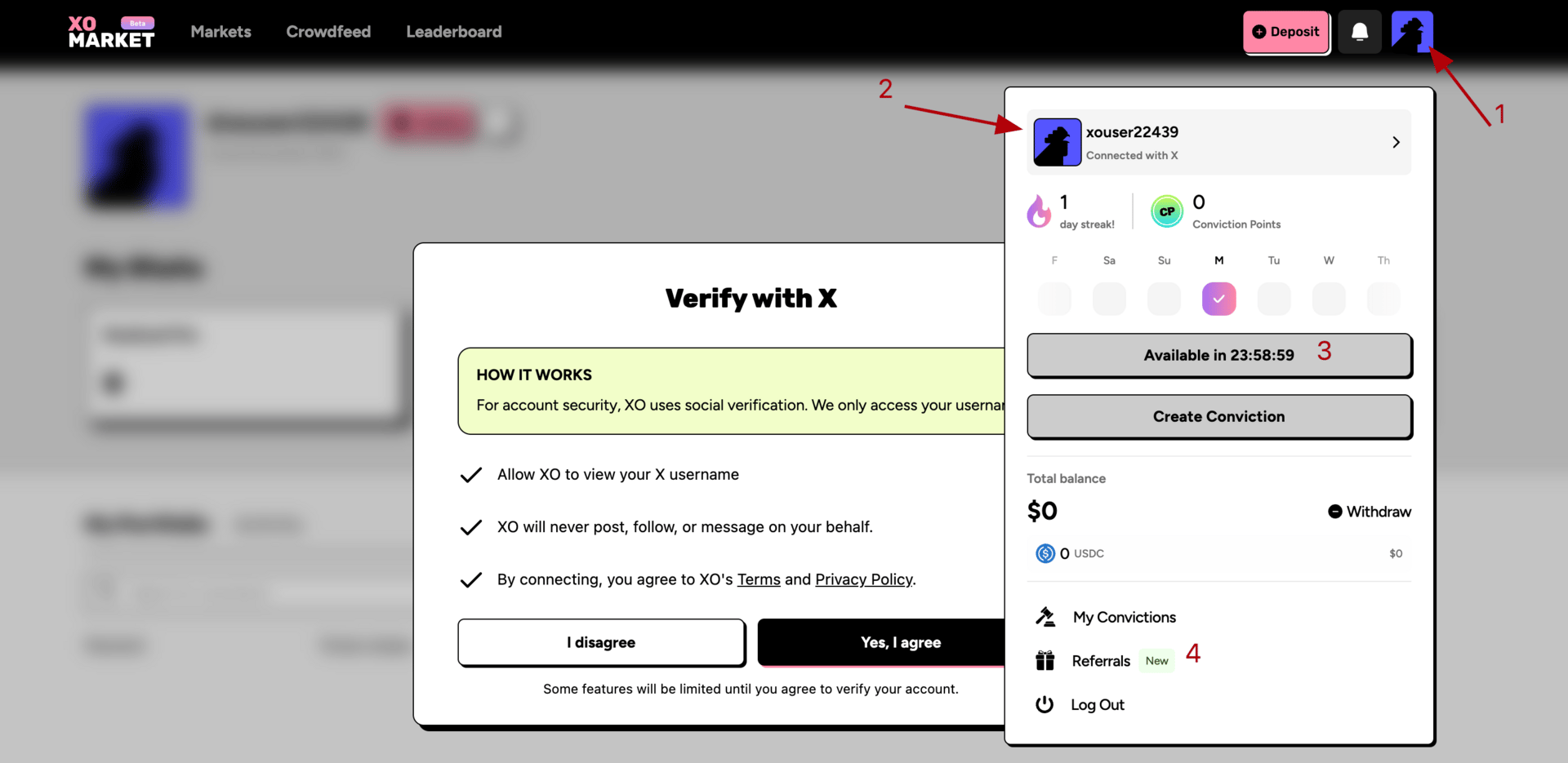 Connect your X account in your profile, check in daily and invite friends.